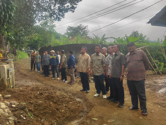 Infokowasi.com – Irvan Azis Ketua LSM Dampal Jurig mendampingi Sekda Sukabumi bersama Kadis PU, Sekdis Bina Marga Kadis Sosial Kepala DPPKAD, Kaban Bakesbangpol, Kadisporabud, serta Camat Kadudampit saat meninjau lokasi bencana.