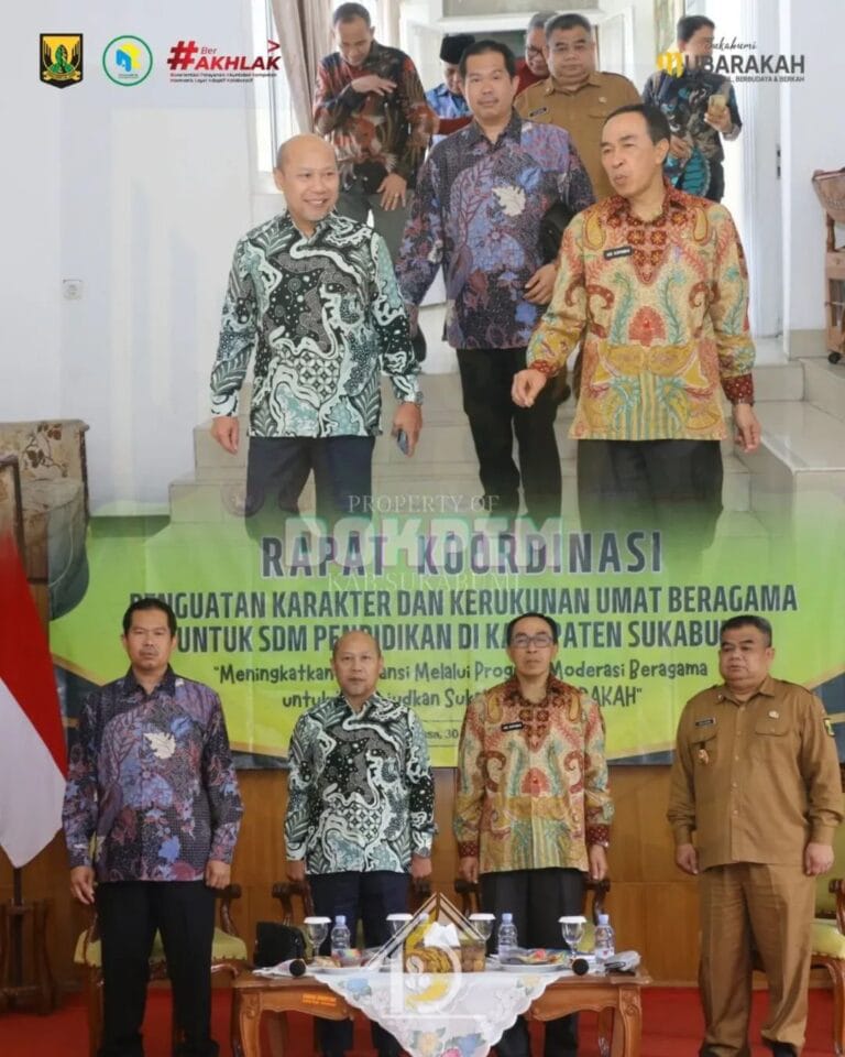 Infokowasi.com- Kabupaten Sukabumi kembali mendapat sorotan positif di tingkat nasional. Deputi Bidang Koordinasi Penguatan Karakter dan Jatidiri Bangsa Kementerian Koordinasi Bidang Pembangunan Manusia dan Kebudayaan (Kemenko PMK), Prof. Warsito, memberikan apresiasi atas capaian indeks kerukunan umat beragama di Sukabumi yang berada di atas rata-rata nasional.