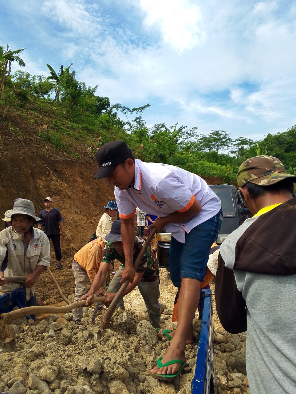 PT Banten Prima memberikan sumbangsih berupa material batu untuk memperbaiki jalur jalan lingkungan dan jalan desa yang rusak akibat terdampak bencana alam pergerakan tanah 4 Desember lalu.