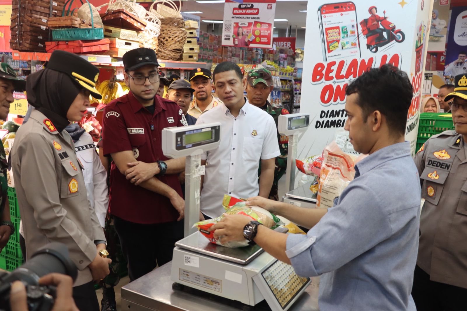 “Berdasarkan hasil pengecekan hari ini di beberapa kios beras di Pasar Pelita dan minimarket, bahan pokok masih tersedia dengan cukup dan harga relatif stabil. Tidak ditemukan adanya indikasi penimbunan atau lonjakan harga yang tidak wajar,” kata Deden kepada awak media.