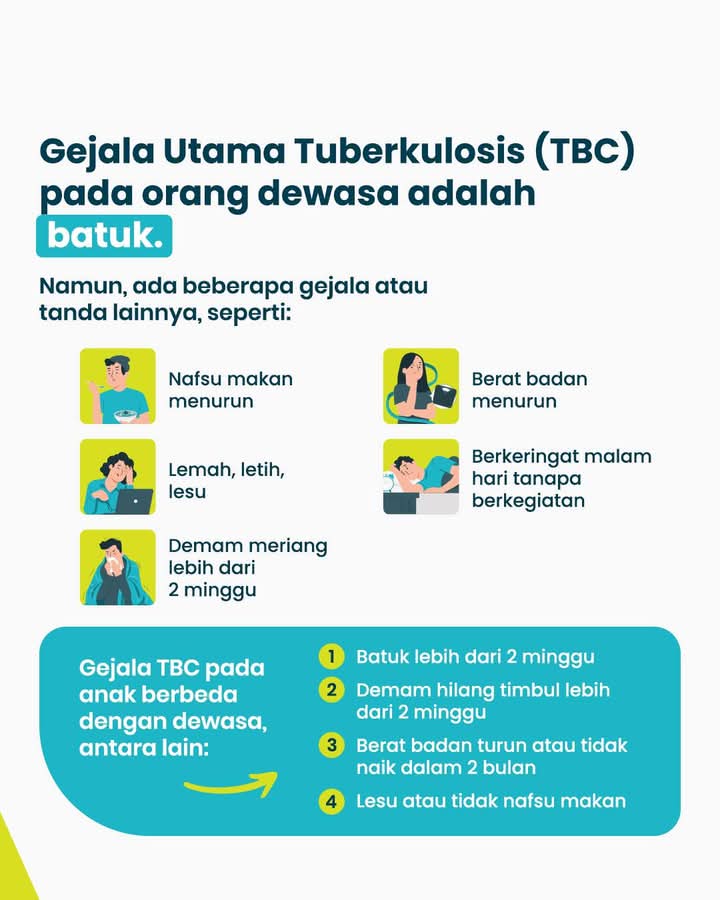 Infokowasi.com – Suatu penyakit bakteri menular yang berpotensi serius yang terutama mempengaruhi paru-paru. Bakteri penyebab TB menyebar ketika orang yang terinfeksi batuk atau bersin.