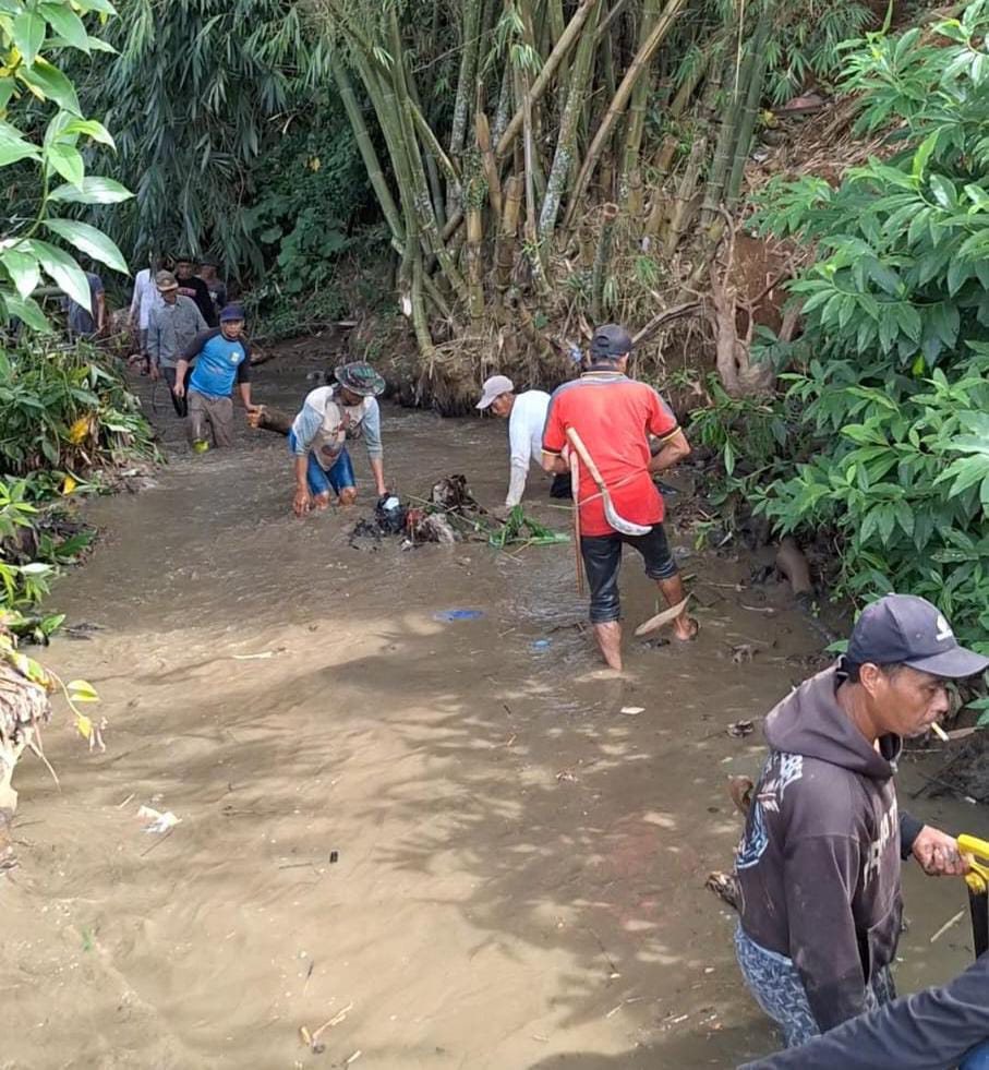 Warga pun tampak antusias mengikuti kegiatan tersebut. Mereka datang dengan membawa peralatan sederhana seperti cangkul dan golok, lalu bekerja sama membersihkan sampah serta endapan tanah yang menyumbat aliran air.