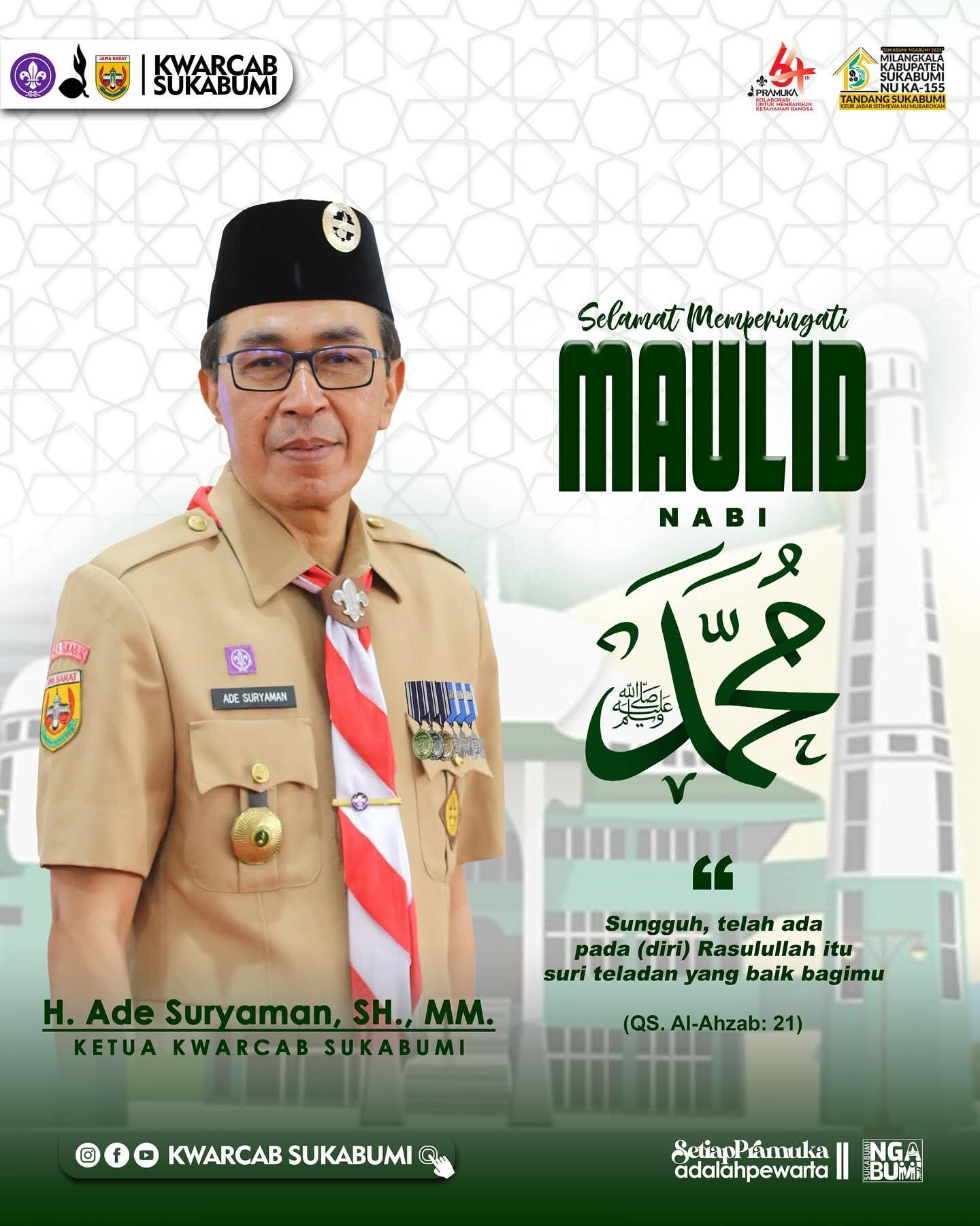 Ketua Kwarcab Gerakan Pramuka Sukabumi, Ade Suryaman Mengucapkan Selamat Memperingati Maulid Nabi Muhammad SAW 1447 H