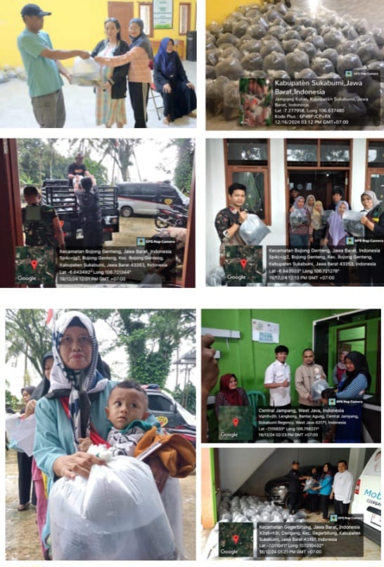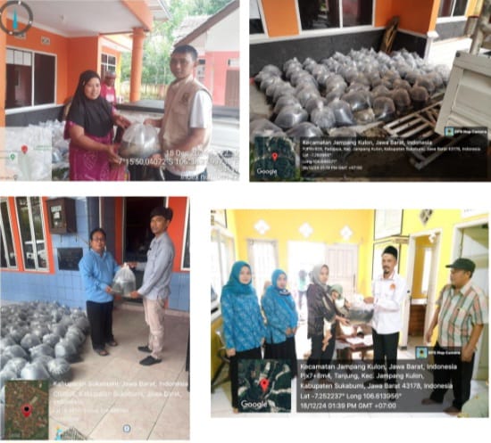 Proses distribusi bantuan dilakukan oleh Dinas perikanan dan dibantu oleh pemerintah desa dan kader posyandu di masing-masing wilayah sasaran, dan secara langsung menyalurkan bantuan kepada keluarga sasaran. Pada saat pendistribusian bantuan terdapat beberapa kendala yang kami hadapi. Hujan deras dalam beberapa hari mengakibatkan terjadinya bencana alam seperti tanah longsor, sungai meluap, dan pergerakan tanah di beberapa titik akses pengiriman yang terlewati, yaitu di Kecamatan Jampangkulon, Kecamatan Cidolog, Kecamatan Surade, dan Kecamatan Lengkong, sehingga berdampak pada terhambatnya pengiriman ikan ke lokasi. Selain itu komunikasi di lapangan menjadi terganggu karena tidak adanya sinyal akibat aliran listrik padam di wilayah Surade. Dengan banyaknya bencana alam yang terjadi di beberapa lokasi tersebut menyebabkan kami mengambil keputusan membuat adendum penambahan waktu pekerjaan.