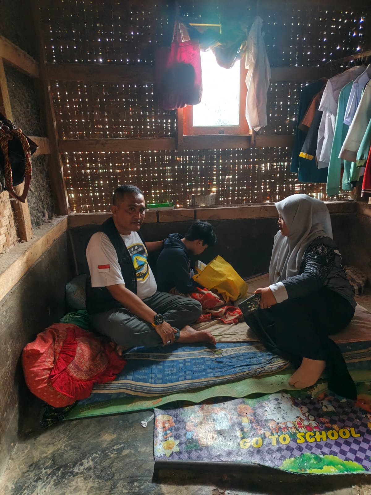 Saat didatangi sang anak yang bernama Dede Rehan 11 tahun yang duduk di kelas 6 sedang tidur karena sakit di kamarnya yang pengap dan kurang layak huni dengan alas tidur seadanya di temani oleh ibunya bernama Santi 39 tahun sang ibu yang tidak bisa melihat buta dini dan kurang normal pendengaran di telinga karena penyakit yang di deritanya bertahun tahun.