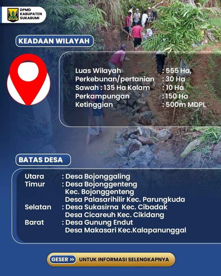 Infokowasi.com – Desa Berekah, yang terletak di Kecamatan Bojonggenteng, Kabupaten Sukabumi, menawarkan pesona alam yang luar biasa serta kekayaan budaya yang memikat. Dikenal dengan pemandangan alam hijau nan asri, desa ini tidak hanya menyuguhkan keindahan alam, tetapi juga memiliki masyarakat yang ramah, yang menjadikan setiap kunjungan terasa lebih hangat dan menyenangkan.