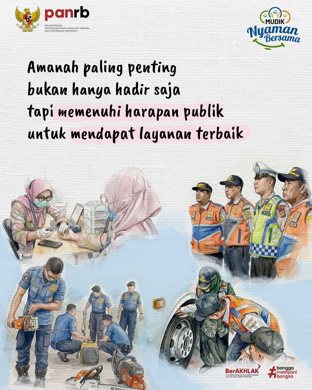 Apresiasi setinggi-tingginya untuk seluruh ASN, TNI, Polri, dan petugas pelayanan publik yang tetap bertugas selama libur panjang Idulfitri dan Nyepi 2026.