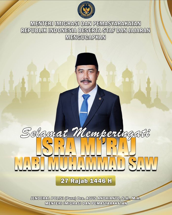 Infokowasi.com – Menteri Imigrasi Dan Pemasyarakatan RI Beserta Staf Dan Jajaran Mengucapkan Selamat Memperingati Isra Mi’raj Nabi Muhammad SAW.(Redaksi)