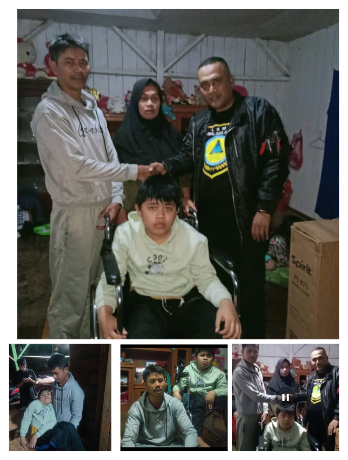 Bapak Pahru Dan Ibu Eni orang tua Muhammad Pauji mengucapkan rasa syukur dan terimakasihnya Kepada Baznas Kabupaten Sukabumi dan LSM Dampal Jurig yang telah membantu 1 unit kursi roda untuk anaknya yang selama ini diidamkan tapi karena keterbatasan dan ketidakmampuan sebagai kepala keluarga tidak bisa mengabulkan keinginan putra semata wayangnya yang Disabilitas kelumpuhan tapi berkat bantuan dari baznas kabupaten Sukabumi melalui LSM Dampal Jurig keinginan anaknya bisa tercapai untuk digunakan aktivitas putranya sehari-hari dan meringankan beban kehidupannya yang asalnya sang anak yang berbobot 65 kg meski dibopong dipangku kalau mau beraktivitas apapun seperti bab. Diakhir stetmenya hanya Allah SWT yang akan membalas segala kebaikannya lirihnya pa Pahru sambil berlinang air mata beserta istrinya yang sedang hamil.(RS)