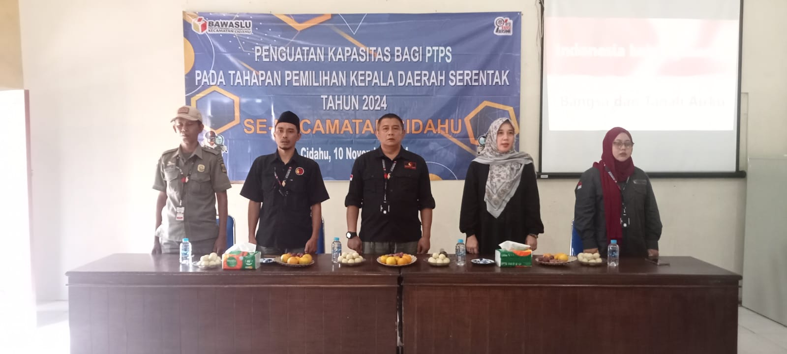 Infokowasi.com – Menjelang pelaksanaan Pilkada Serentak 27 November 2024, Panwaslucam Cidahu terus memperkuat kapasitas Pengawas Tempat Pemungutan Suara (PTPS), guna memastikan kelancaran pelaksanaan Pilkada sesuai dengan pedoman teknis dan ketentuan yang berlaku, Pengawasan yang baik bisa mencegah munculnya potensi pelanggaran yang mungkin terjadi selama proses pemilihan. Hal tersebut dikemukakan oleh Dedhi Permadi Ketua Panwaslucam Cidahu saat menggelar acara penguatan peningkatan kapasitas bagi 112 orang PTPS Pilkada 2024 se-kecamatan Cidahu di Aula Kantor Kepala Desa Pasirdoton. Minggu, 10 November 2024.