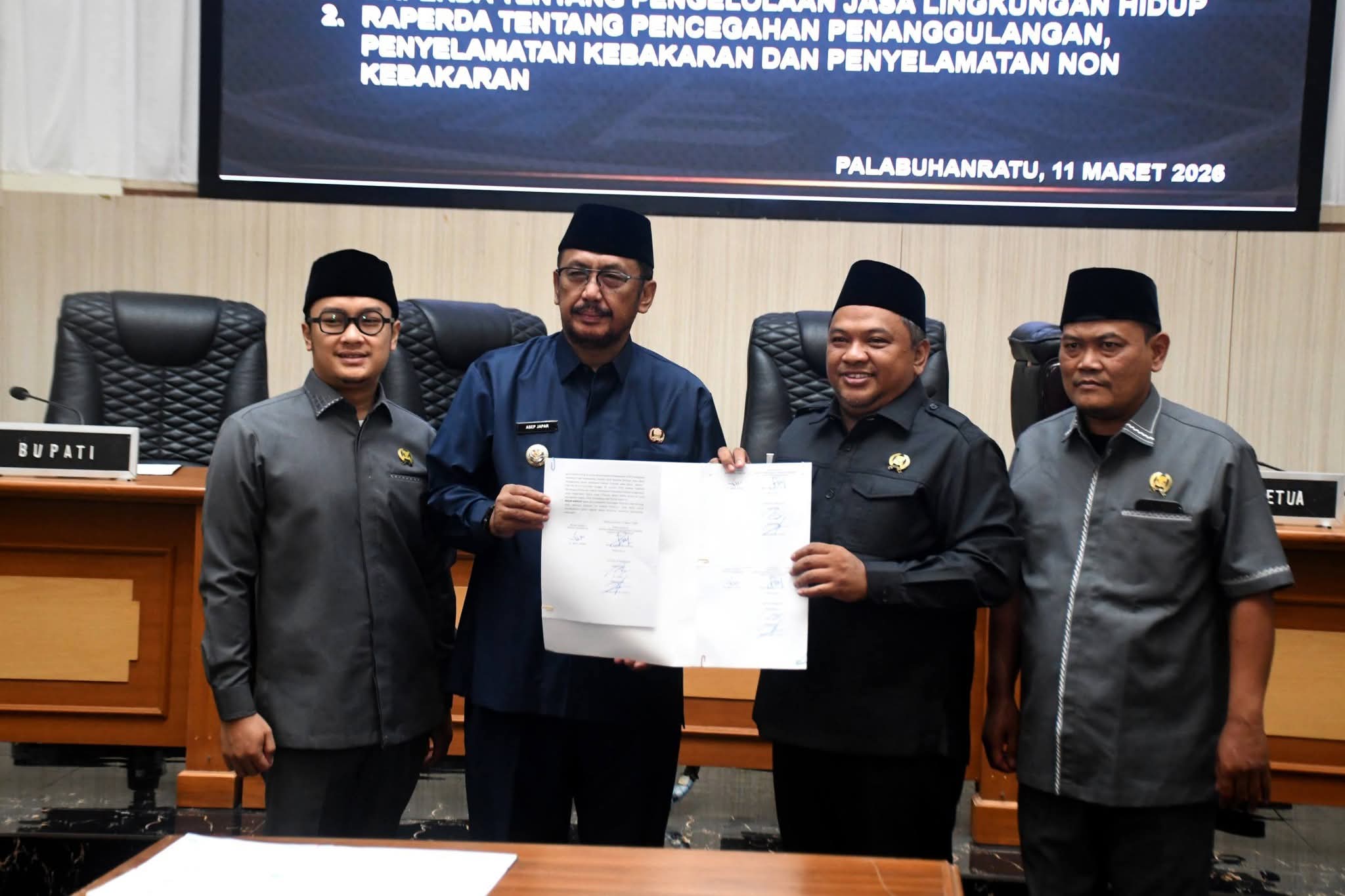 Dalam kesempatan itu, Bupati menyampaikan terima kasih dan penghargaan kepada pimpinan dan seluruh anggota DPRD Kabupaten Sukabumi yang telah menuntaskan pembahasan dua raperda penting tersebut.
