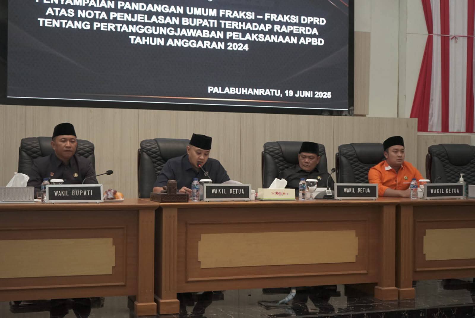 Rapat Paripurna dipimpin langsung oleh Ketua DPRD Kabupaten Sukabumi, Budi Azhar Mutawali. Dalam rapat ini seluruh fraksi DPRD menyampaikan pandangan umumnya terhadap Raperda secara lisan maupun tertulis.