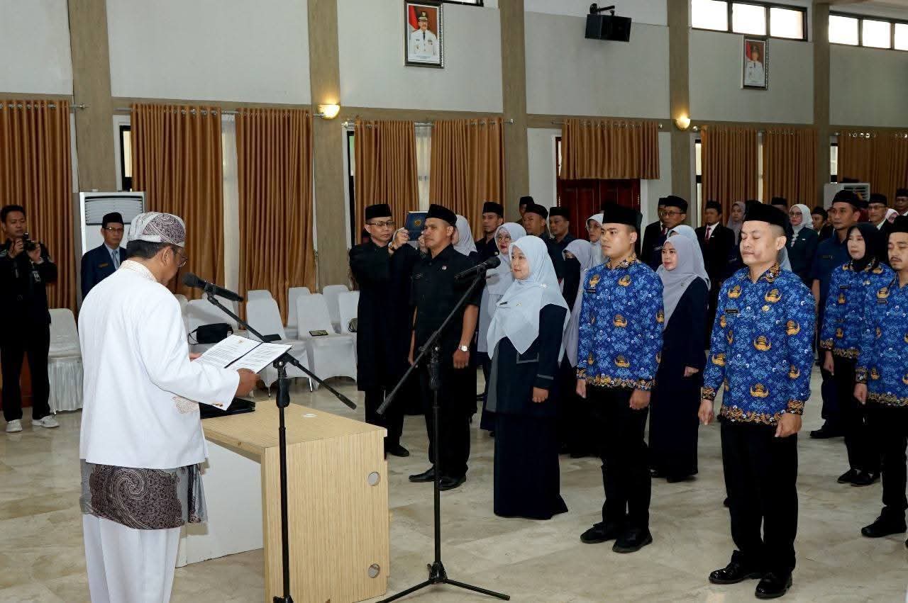 Infokowasi.com – Sebanyak 48 pegawai negeri sipil di lingkungan pemerintah kabupaten sukabumi dilantik dan diambil sumpah janji jabatan fungsional oleh Bupati Sukabumi H Asep Japar, di Aula Sekretariat Daerah Kabupaten Sukabumi, Rabu (10/9/2025).