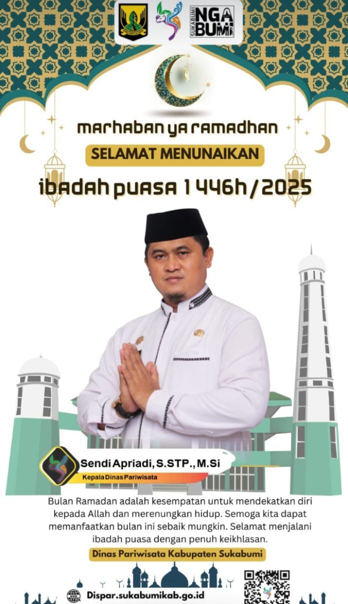 Infokowasi.com – Pemerintah Kabupaten Sukabumi Kepala Dinas Pariwisata Kabupaten Sukabumi Mengucapkan Selamat Menjalankan Ibadah Puasa 1446 H. (Robi)