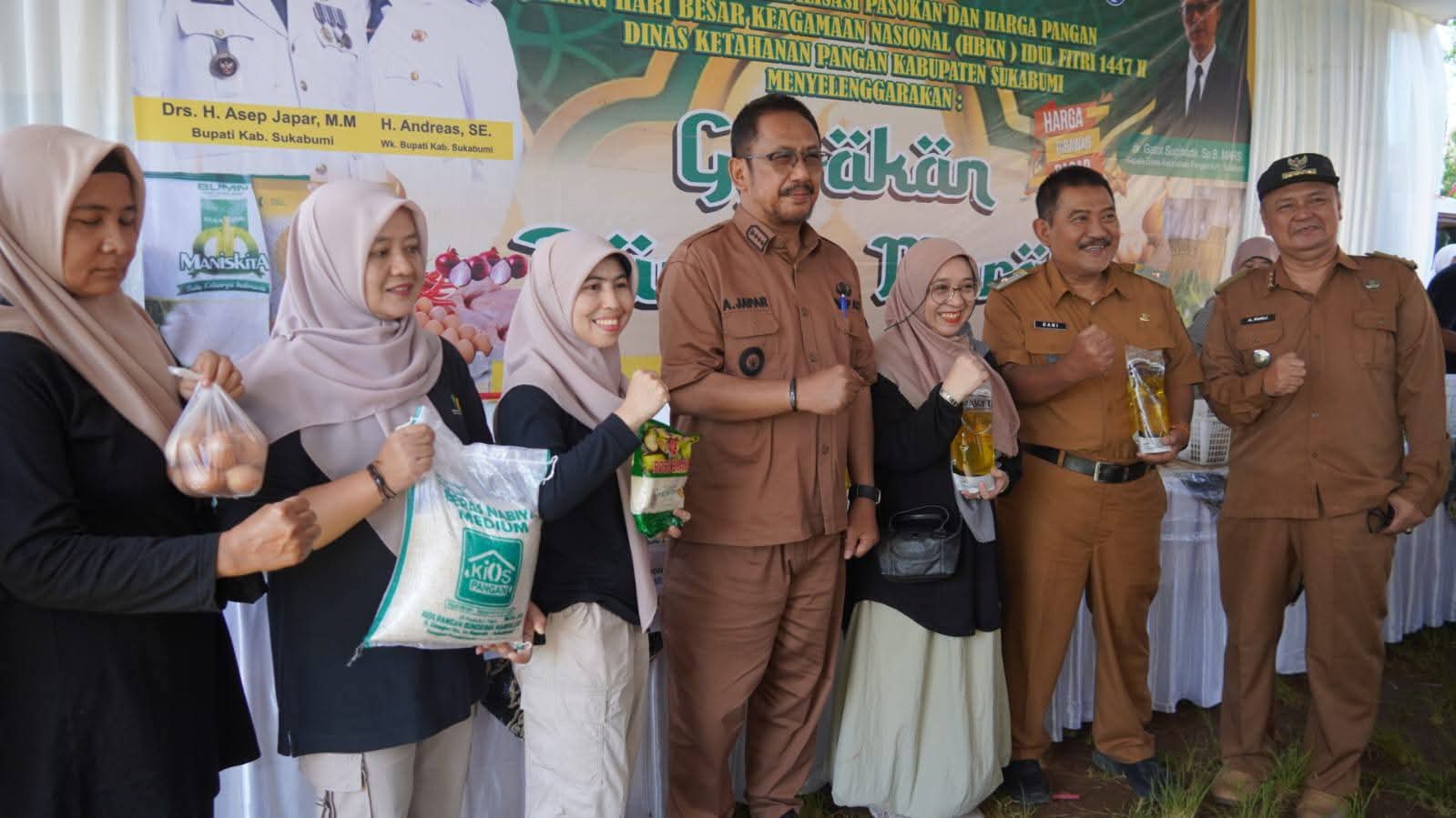 Infokowasi.com – Warga Kecamatan Cikembar, Kabupaten Sukabumi padati Lapang Sepakbola Bojong di Desa Bojong, Selasa, 10 Maret 2026. Mereka datang untuk membeli sembako murah di Bazar Ramadhan 1447 Hijriah yang di inisiasi Dinas Perdagangan dan Industri Kabupaten Sukabumi. Diketahuu bazar tersebut dibuka langsung Bupati Sukabumi H. Asep Japar.