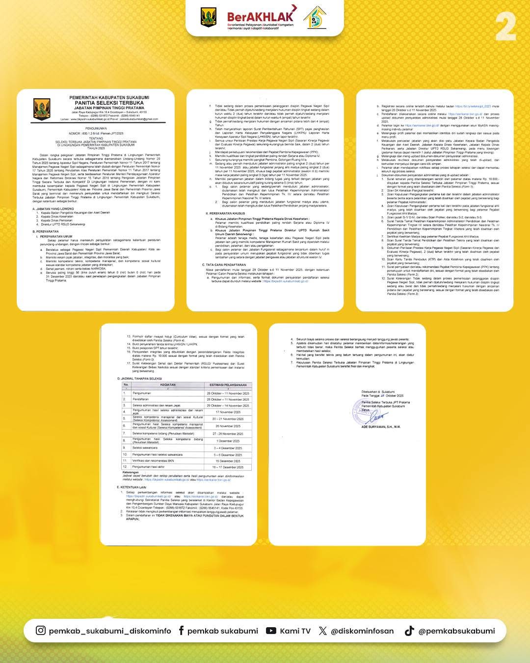 Bagi ASN yang memenuhi persyaratan dan berminat berkarier di lingkungan Pemkab Sukabumi, segera daftarkan diri sesuai ketentuan yang tercantum dalam pengumuman resmi.