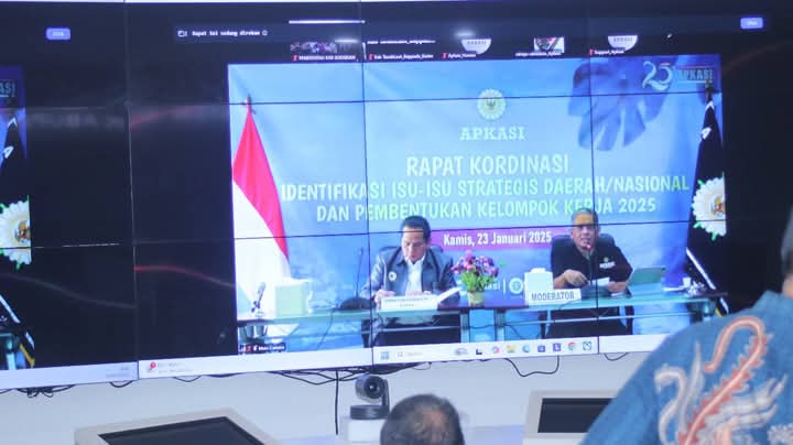 Infokowasi.com – Pemerintah Kabupaten Sukabumi mengikuti Rapat Koordinasi (Rakor) Asosiasi Pemerintah Kabupaten Seluruh Indonesia (Apkasi) tentang Identifikasi Isu-Isu Strategis Daerah dan Nasional secara Virtual, di Sekretariat Daerah, Palabuhanratu, Kamis (23/1/2025).