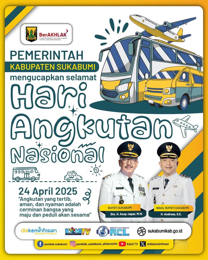 Infokowasi.com – Pemkab Sukabumi Mengucapkan Selamat Hari Angkutan Nasional “Angkutan Yang Tertib Aman dan Nyaman Adalah Cerminan Peduli Sesama” (Redaksi)