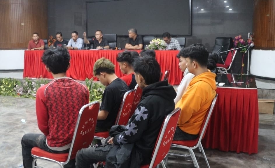 Polres Sukabumi Kota menyerahkan 12 remaja yang terbukti positif mengonsumsi obat keras terbatas saat mengikuti aksi demonstrasi Gerakan Amarah Rakyat Sukabumi ke Badan Narkotika Nasional (BNN) Kabupaten Sukabumi untuk menjalani proses rehabilitasi, Selasa (2/0/2025).