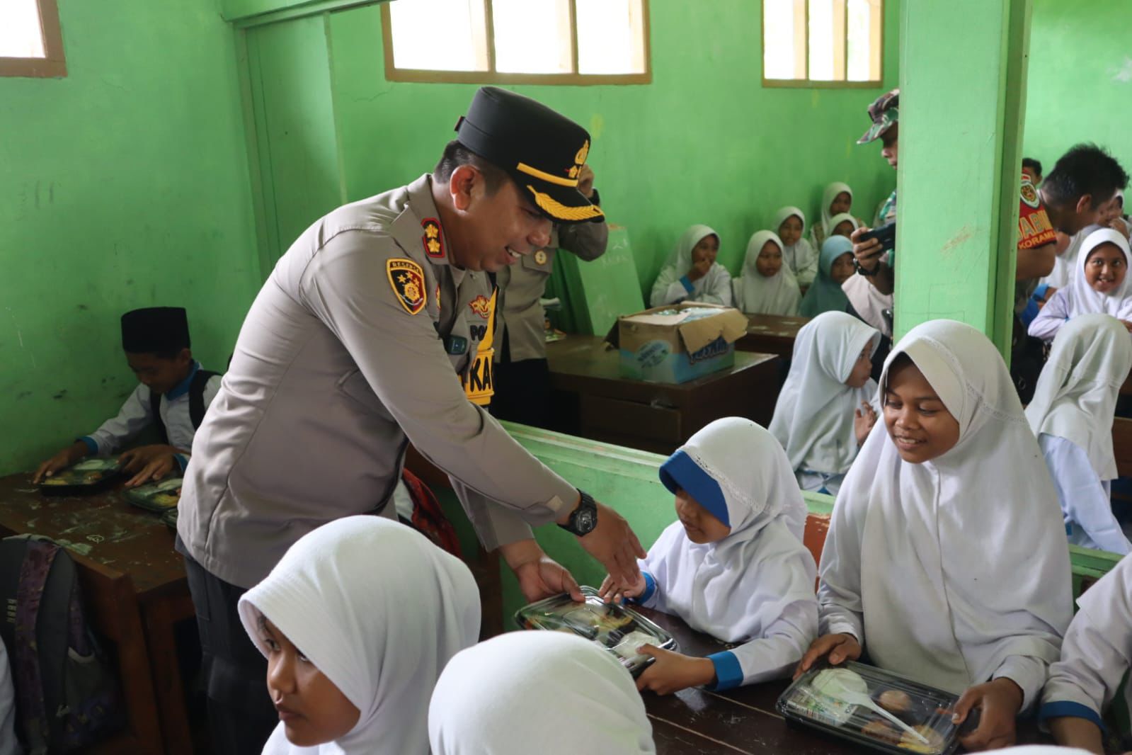 Infokowasi.com – Kapolres Sukabumi, AKBP Dr. H. Samian, S.H., S.I.K., M.Si., melaksanakan kunjungan silaturahmi ke Sekolah DTA Sirojul Aulad di Desa Bojongkembar, Kecamatan Cikembar, Kabupaten Sukabumi, pada Rabu (6/11/2024). Kegiatan ini diwarnai dengan pemberian susu dan makan siang bergizi gratis kepada para pelajar, sebagai bagian dari upaya meningkatkan kualitas gizi anak-anak dan menekan angka stunting.
