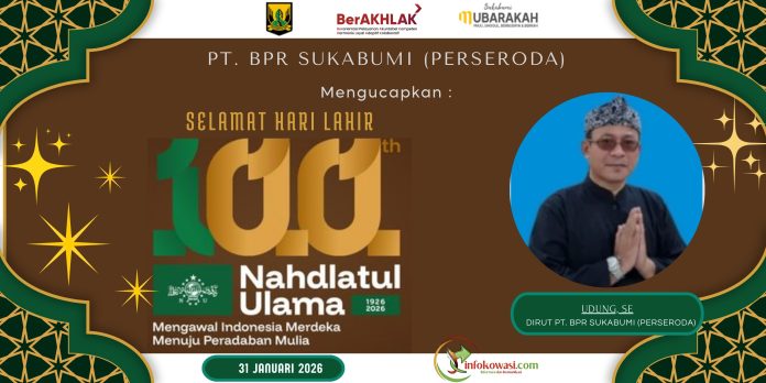 Infokowasi.com- PT.BPR Sukabumi (Perseroda) Kabupaten Sukabumi Mengucapkan Harlah Nu Ke 100h Tahun, “Mengawal Indonesia Merdeka Menuju Peradaban Mulia”(AP)