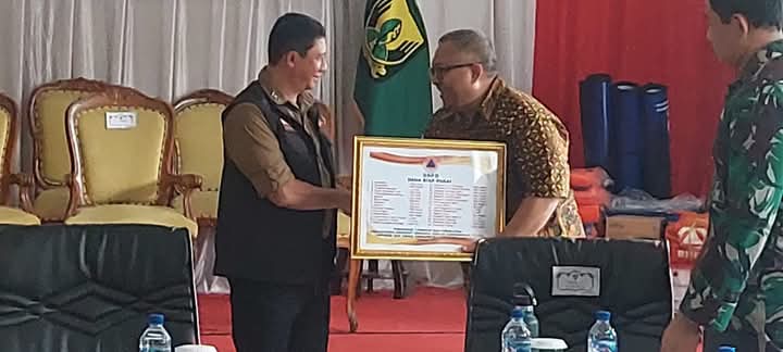 Dipenghujung acara dilaksanakan penyerahan secara simbolis bantuan logistik dan peralataan tahap dua dari kepala BNPB Letjen TNI, Suharyanto kepada Bupati Sukabumi H. Marwan Hamami didampingi Pj Gubernur dan Sekda Jabar.
