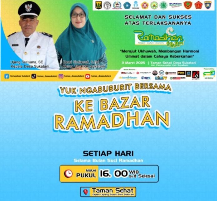 Pemerintah Desa Sukatani, Kecamatan Parakansalak, Kabupaten Sukabumi kembali menggelar acara tahunan Ramadhan Fest yang ke-4, dimulai sejak 3 Maret 2025 dan akan berlangsung hingga 30 Maret 2025 mendatang. Bertempat di Taman Sehat Desa Sukatani, kegiatan ini menjadi daya tarik tersendiri bagi warga setempat maupun pengunjung dari luar desa.