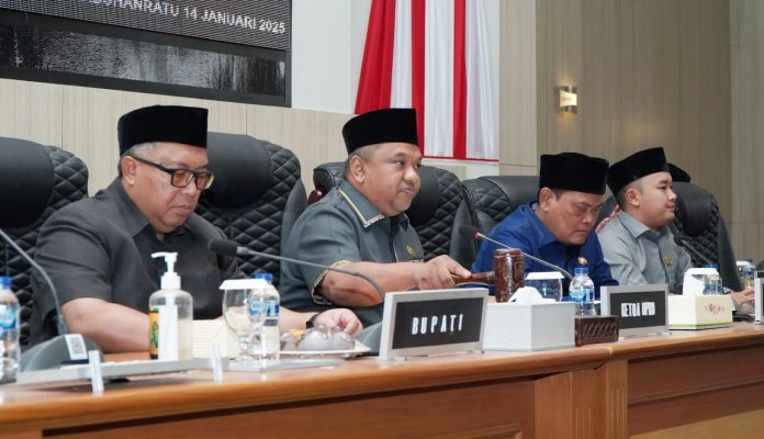 Rapat paripurna tersebut dipimpin oleh Ketua DPRD Kabupaten Sukabumi Budi Azhar Mutawali, S.I.P. didampingi Wakil Ketua II DPRD H. Usep. Wakil Ketua III Ramzi Akbar Yusup, SM. Bupati Sukabumi Drs. H. Marwan Hamami, MM. Serta Unsur Forkopimda dan Pemerintah Daerah Kabupaten Sukabumi, Rapat tersebut bertempat diruang Sidang Utama gedung DPRD Kabupaten Sukabumi, Selasa, (14/01/2025).