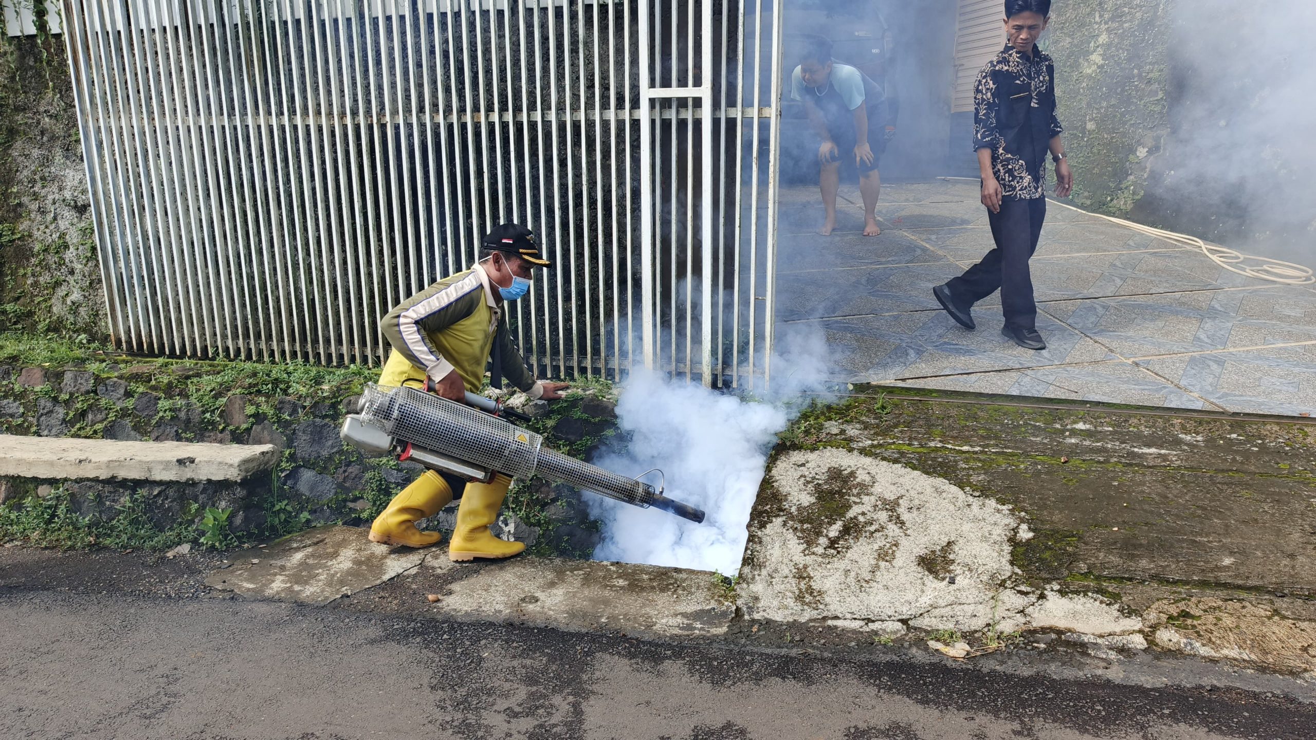 Bersama tim kesehatan dari Puskesmas Bojonggenteng, Forkopimcam melakukan pengecekan lapangan sekaligus kegiatan fogging di lingkungan permukiman Kampung Pamatutan RT 20 RW 07, Desa Bojonggenteng, Kecamatan Bojonggenteng. Lokasi tersebut diduga menjadi tempat berkembangnya nyamuk Aedes aegypti, vektor penyebab DBD.