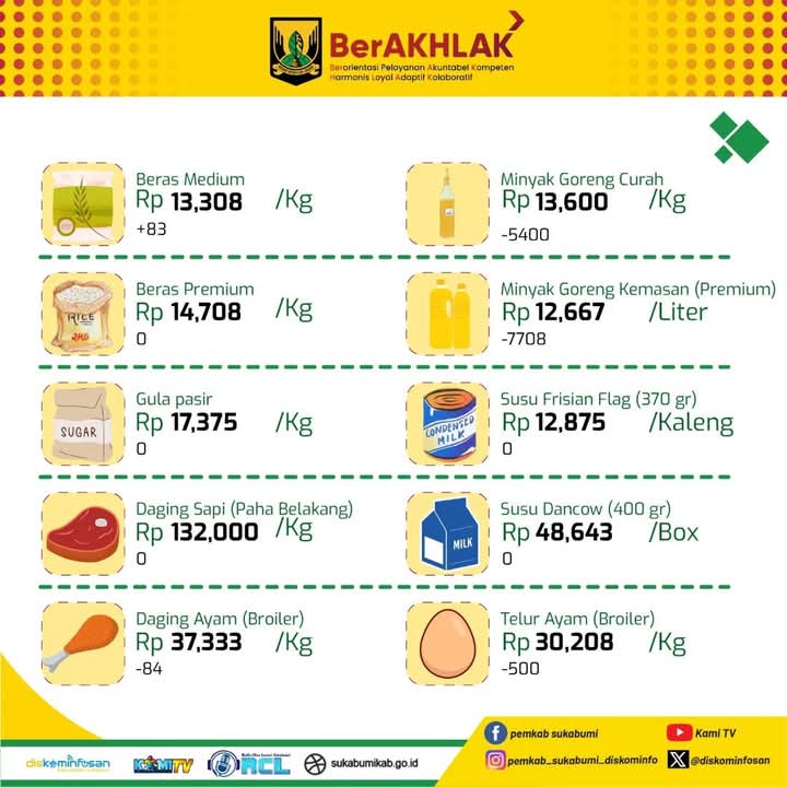 📌 Pantau terus update harga bahan pokok bersama Pemerintah Kabupaten Sukabumi! (Robi)