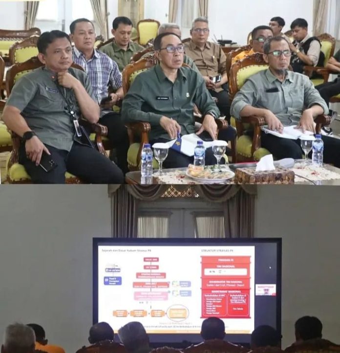 Infokowasi.com – Sekretaris Daerah Kabupaten Sukabumi H. Ade Suryaman, SH., MM, Mengikuti Rapat Koordinasi dan Sosialisasi Aksi Digitalisasi Layanan Publik Stranas Pemberantasan Korupsi dengan KPK RI Secara Virtual dari Aula Pendopo Sukabumi, Selasa (8/07/2025).