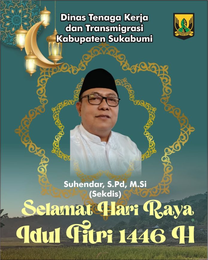 Sekretaris Dinas Tenaga Kerja Dan Transmigrasi Kabupaten Sukabumi Mengucapkan Selamat Hari Raya Idul Fitri 1 Syawal 1446 H/2025 M Minal Aidzin Wal Faidzin Mohon Maaf Lahir Batin. (Robi)