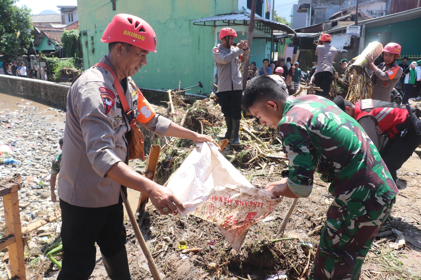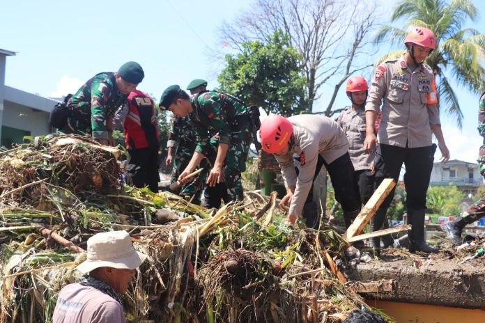 “Kami bersama TNI dan stakeholder terkait melakukan pembersihan di wilayah terdampak banjir, termasuk rumah-rumah warga dan tempat ibadah yang mengalami kerusakan. Langkah ini merupakan bentuk kepedulian serta sinergi dalam membantu masyarakat yang terdampak,” ujar AKBP Samian.