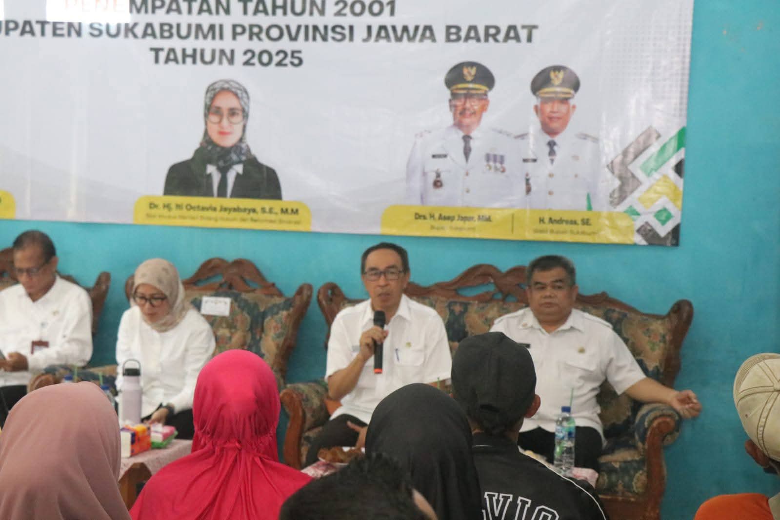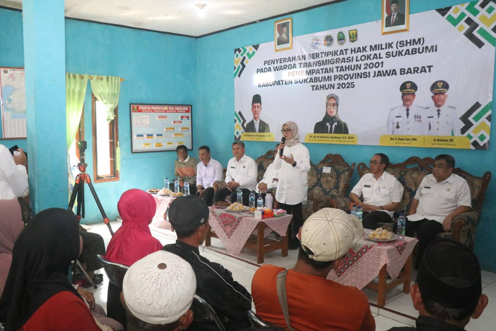 Infokowasi.com – Sekda Ade Suryaman menerima Kunjungan Kerja Staf Khusus Menteri Transmigrasi terkait penyerahan Sertipikat Hak Milik (SHM) Transmigrasi Lokal Kabupaten Sukabumi, Rabu 23/07/25. Penerimaan berlangsung di Balai Desa Curug Luhur Kecamatan Sagaranten Kabupaten Sukabumi.