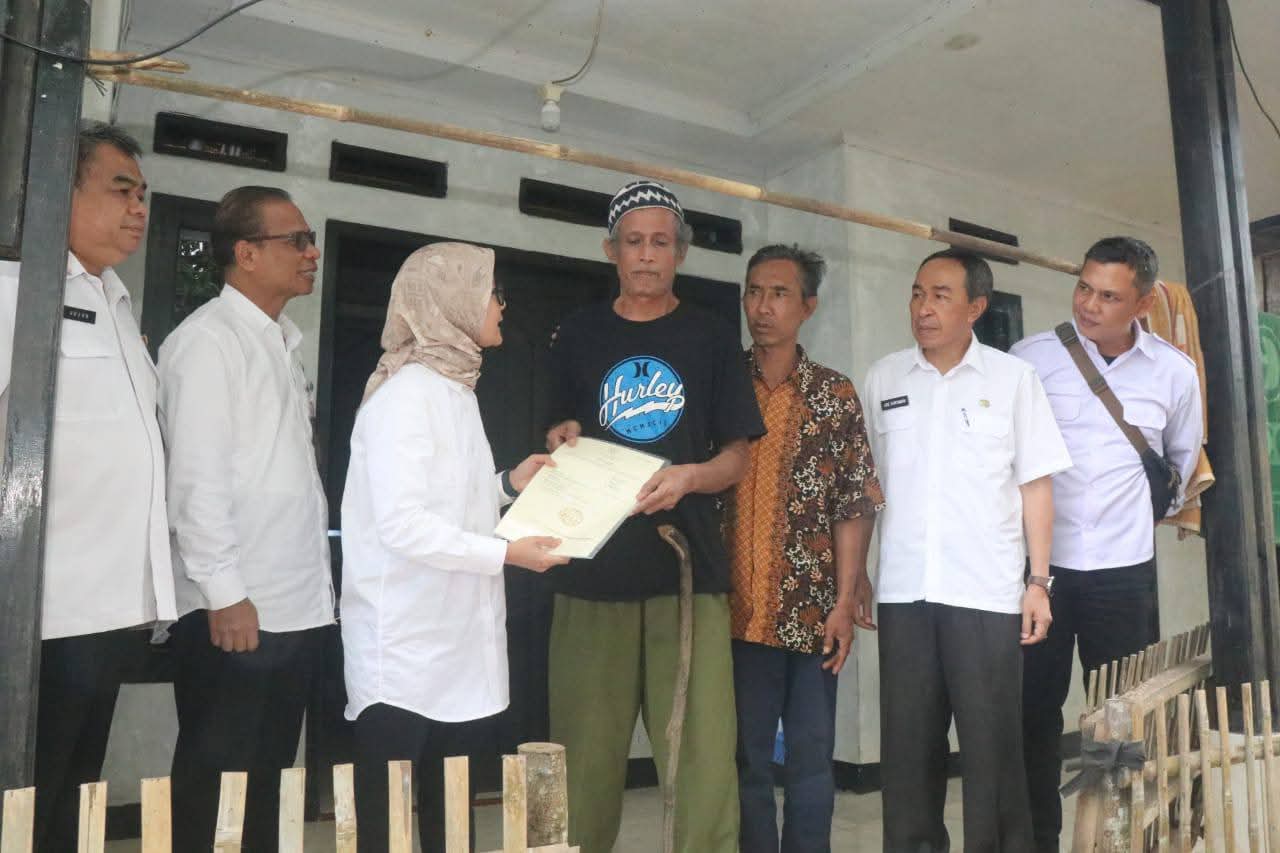 Selanjutnya Staf Mentri Transmigrasi didampingi oleh Sekda Sukabumi menyerahkan Sertifikat SHM secara simbolis kepada Warga sebanyak 20 Orang