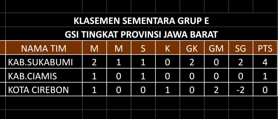 Dengan poin 4 Kabupaten Sukabumi sementara memimpin klasemen grup.