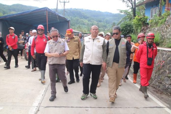 Infokowasi.com – Wakil Bupati Sukabumi H Iyos Somantri mendampingi kunjungan kerja Wakil Ketua DPR RI Cucun Ahmad Syamsurijal meninjau lokasi bencana alam di Kampung Cisayar, Desa Mekarsari Kecamatan Nyalindung, Jumat, 6 Desember 2024.