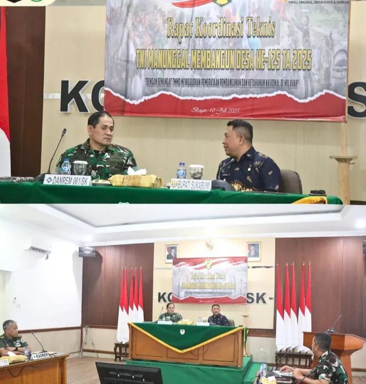 Infokowasi.com – Wakil Bupati Sukabumi H. Andreas Mewakili Bupati Mengikuti Rapat Koordinasi Teknis TNI Manunggal Membangun Desa (TMMD) Ke 125 Tahun 2025, Bertempat di Markas 061/Suryakencana Bogor, Kamis (10/07/2025).