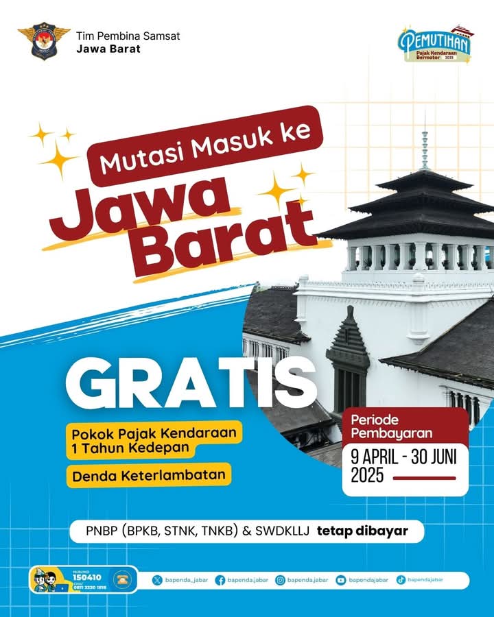 Infokowasi.com – Warga Kota Sukabumi yang masih memiliki kendaraan dengan plat nomor wilayah di luar Jawa Barat, mari manfaatkan kesempatan ini untuk mutasikan kendaraan. (Robi)